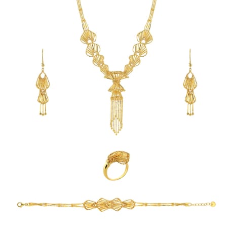 تعتبر الأطقم الذهبية طريقة ذكية لشراء المجوهرات الذهبية، حيث ستمنحكِ إطلالة مثالية متكاملة، كما ويمكنك في الوقت نفسه اقتناءها لتكون بمثابة استثمار ممتاز لاحتياجاتك المستقبلية. لا تتردد في إلقاء نظرة على الخيارات المتنوعة من أطقم المجوهرات الذهبية التي نقدمها